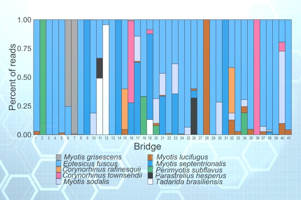 While the bulk of our research genetically identifies bats, we can identify any species and its diet. From bridge maintenance to wind energy to important roosts, we have helped wildlife managers and researchers get the data they need to make ecologically sound decisions for their projects.
