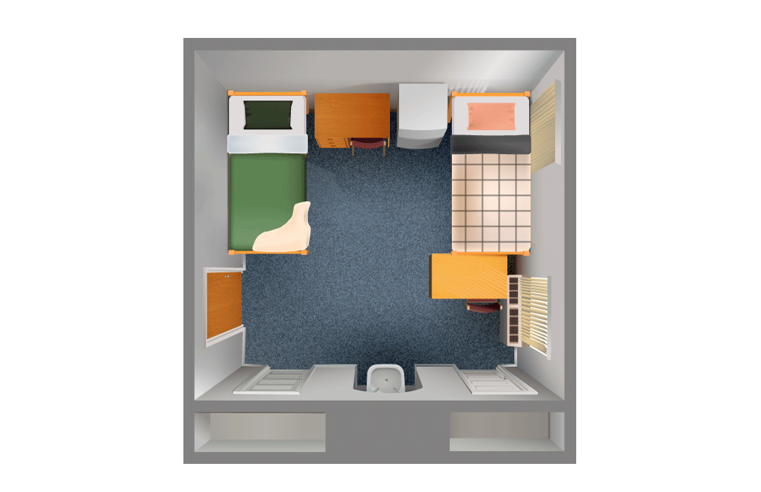 Two students per room standard (with single-room options)