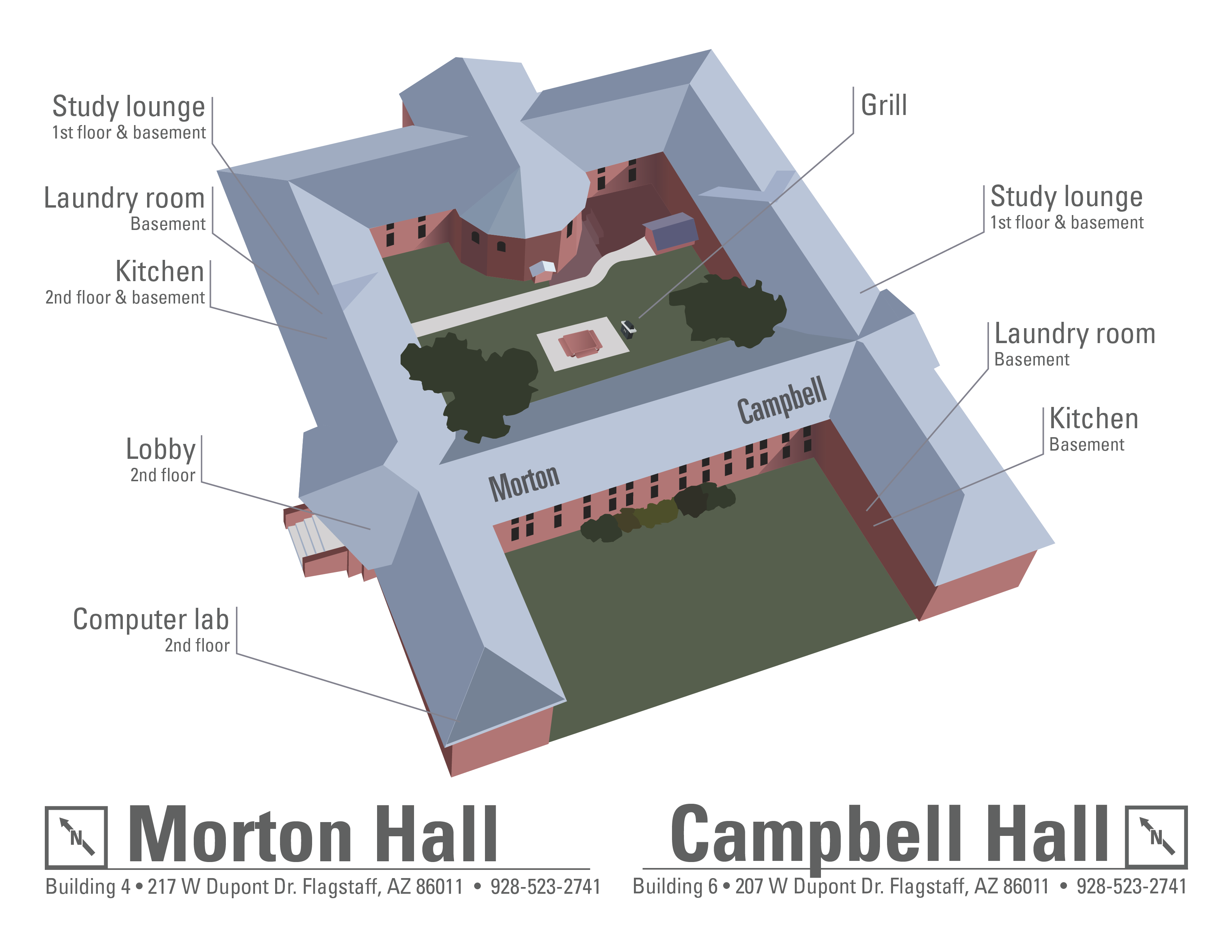 As part of North District, Campbell and Morton are connected, coed traditional-style Campus Living communities housing primarily freshmen and sophomores. Residents enjoy the small, tight-knit community, and they enjoy relaxing in the internal courtyard or out on the beautiful historic North Quad.