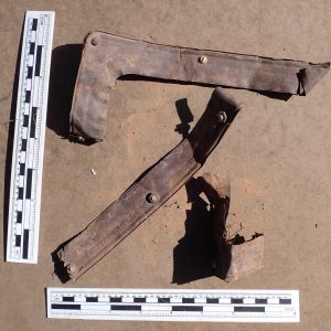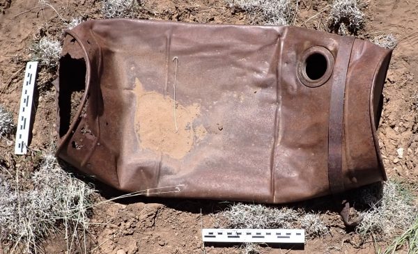 There is some potential evidence for at least one additional car. Harry Matson, the oldest son of Apex’s loader man, mentioned his family’s 1928 Chevy in an interview with Al Richmond. A photo of Harry with his father, Eric, and mother, Lily, in front their Apex home seemingly includes that car. As this was likely a personal vehicle, it’s possible the Matsons took better care of the car, leaving behind few pieces. A 1929 New Mexico license plate also suggests a second car was present at Apex.