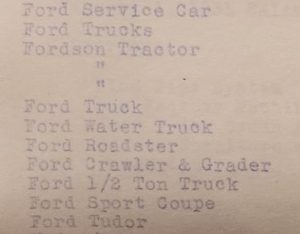 A 1931 Saginaw and Manistee Lumber Company assets record shows that the company owned several vehicles, including a Fort Sport Coupe, Ford Tudor, and Ford Roadster, all Model A styles produced starting in 1927.