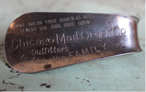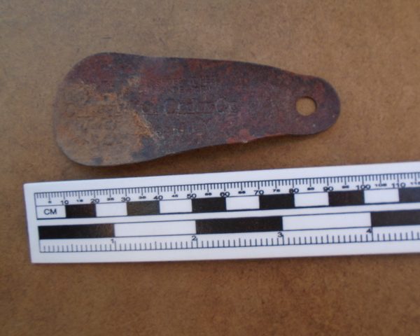 From one shoe related artifact we even have information about a mail order company active at the time of Apex. One of the shoehorns found on site has decipherable writing on it. The Chicago Mail Order Company began in the early 1900’s and became a popular mail order company like Sears and Montgomery Wards before them. Shoehorns, like the one recorded at Apex, were given out by the company as a form of promotion beginning in the 1930’s, “To All the Family”.