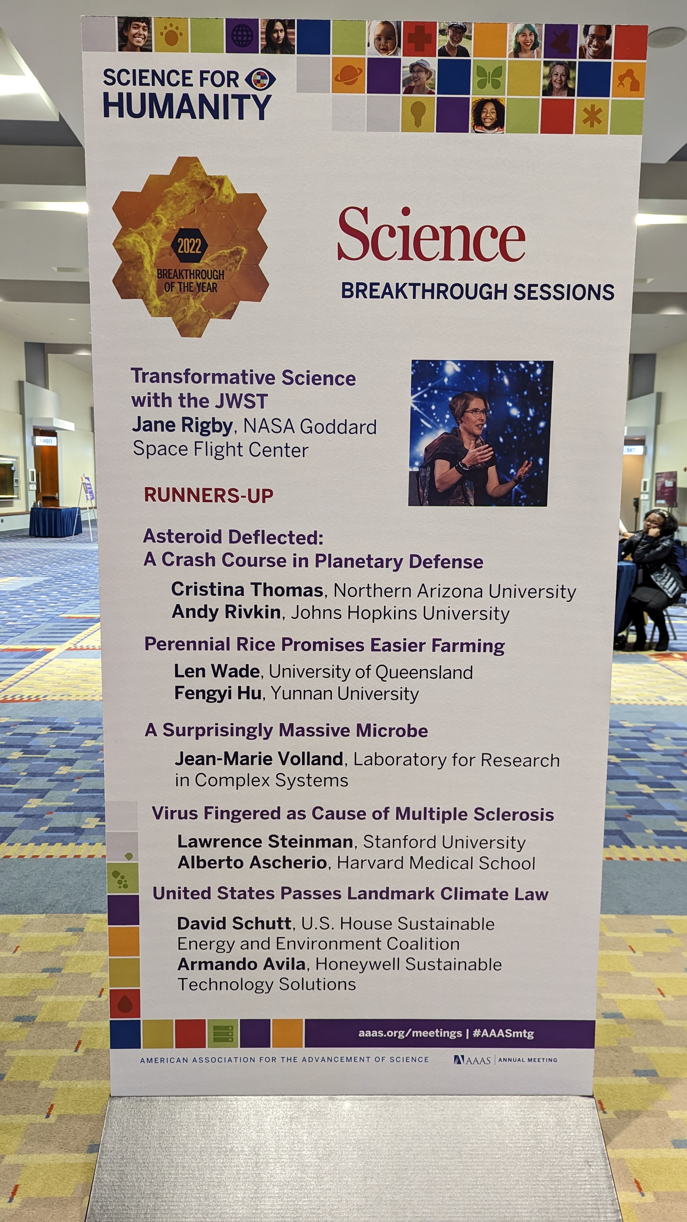 Cristina and Andy Rivkin were invited to present on behalf of DART in the Science Magazine Breakthrough Session. They were one of the runners up for Science breakthrough of the year — JWST was the winner.
