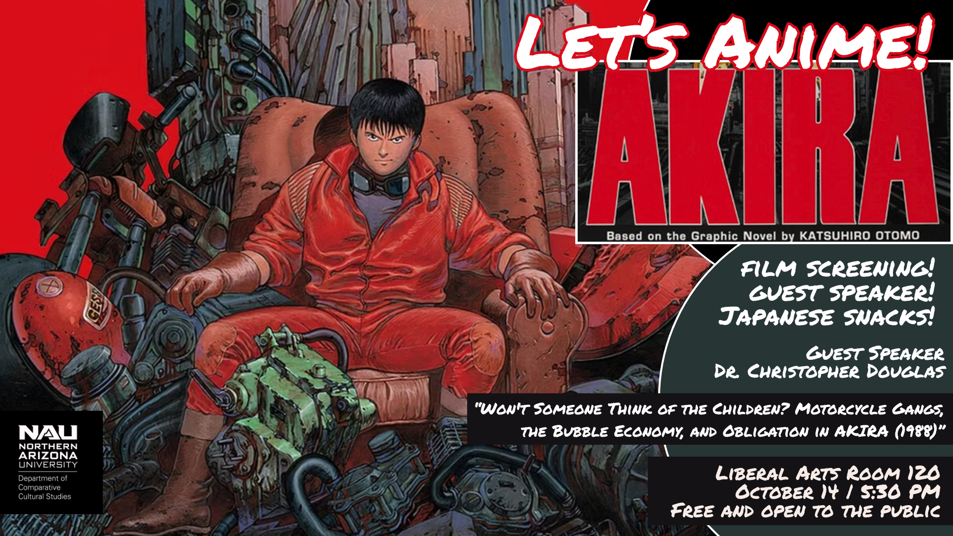 Let’s Anime is one of CCS’s most anticipated events and this Fall it was attended in record numbers–some of the crowd were sitting on the floor in order to participate! This Fall the film and topic was Akira (1988) with a guest presentation by Dr. Christopher Douglas: “Won’t Someone Think of the Children? Motorcycle Gangs, the Bubble Economy, and Obligation in Akira (1988).” Make sure to stay tuned for the Spring 2026 installation of this popular event!