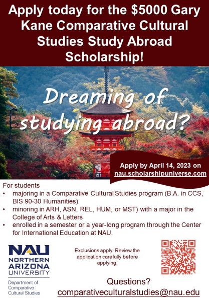 Apply today for the $5000 Gary Kane Comparative Cultural Studies Study Abroad Scholarship! Learn more here.