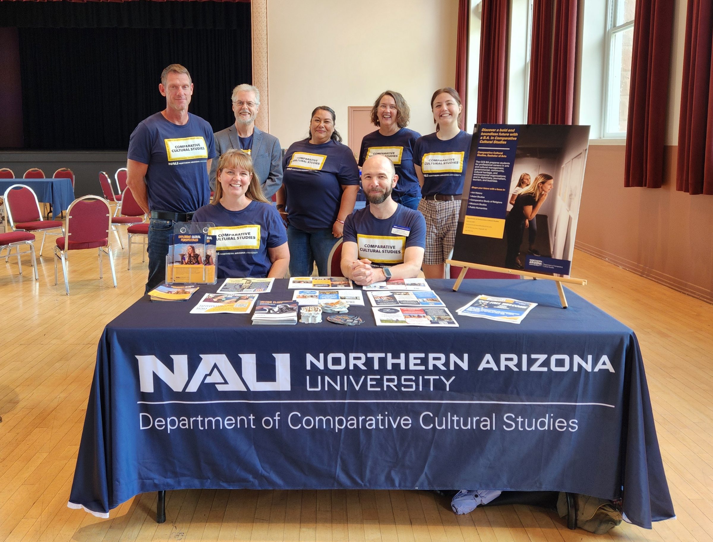 Left to right, front to back: Dr. Carli Anderson, Dr. Kent Linthicum, Dr. Eric Breault, Dr. Jason BeDuhn, Dr. Anabel Galindo, Dr. Diana Coleman and CCS major student ambassador Gracie Price.