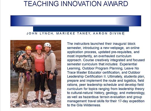 The Parks and Recreation Management (PRM) Outdoor Education & Leadership (OEL) emphasis area program prepares professionals for rewarding positions in the outdoor field. Northern Arizona University promotes experiential education and real-life challenges which teach students to plan, organize and facilitate backcountry programs to meet the needs of an ever changing population.