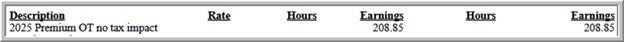 Yes, each employee with qualifying overtime will receive a notice that they have “premium” overtime. Your final paycheck of 2025, issued on 12/26/2025, contains the following information which is the amount of your “premium” overtime for 2025.