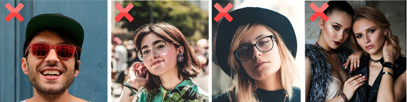 X Use filters (this will be flagged as “face obscured”)