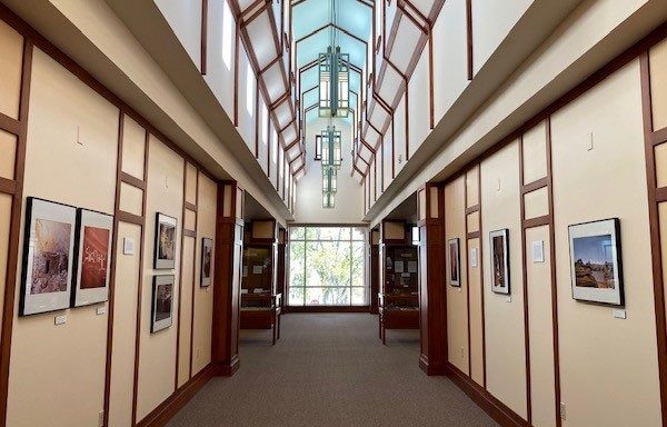 The main exhibit in the atrium of Special Collections and Archives travels along the Colorado River via photographs arranged by river mile.