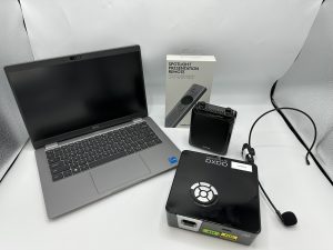 Includes: PC Laptop, compact projector, wireless mic w/amplification, presentation remote.