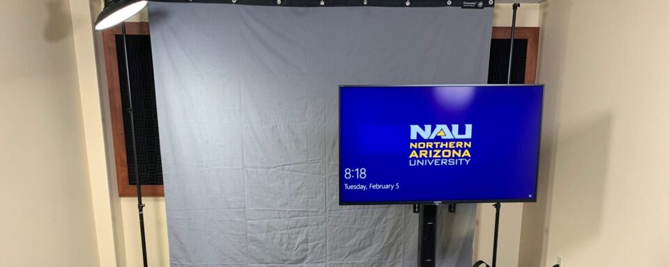 The One Button Studio is located in room 139 on the first floor of the Cline Library, adjacent to the Student Technology Center. NAU and CCC students, staff, and faculty are permitted to reserve the One Button Studio for up to two hours per day.