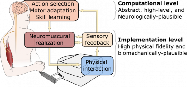 The sensorimotor apparatus that makes humans so dexterous is vastly complex. Our research philosophy is that the complexities of the human musculoskeletal system and its neural control mechanism are tightly interrelated, and one cannot be understood without considering the other. In our work, we aim to combine biomechanically plausible models of human movements with abstract neuroscientific theories to present multi-scale holistic models for human neuromuscular control. These holistic motor control models offer answers to both why- and how-questions in a unified framework. Low-level details such as the distinction between reflex-based and cortical contributions to muscle activities, and high-level “computational” aspects such as action selection and skill learning are studied together in this framework. In return, the model validation process will inspire new testable hypotheses and experimental paradigms to understand human movements better.
