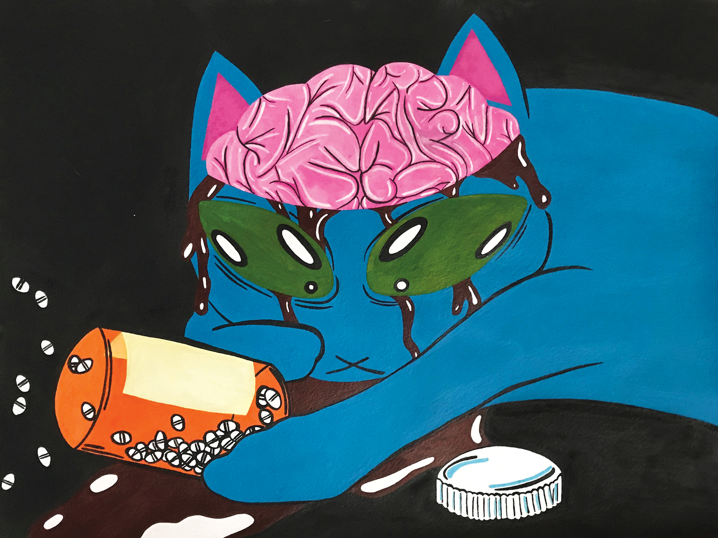 Life Implies Death questions the issues that people with depression face, while showing the viewer unhealthy situations and ideas. Depression clouds healthy judgement and creates illusions in which life seems hopeless and there is no other way out but pain and possibly even harming oneself. Life Implies Death portrays the romanticized version of mental illness (specifically depression) that society has. It explores the idea of covering emotional pain with physical pain and the thoughts of existence itself.