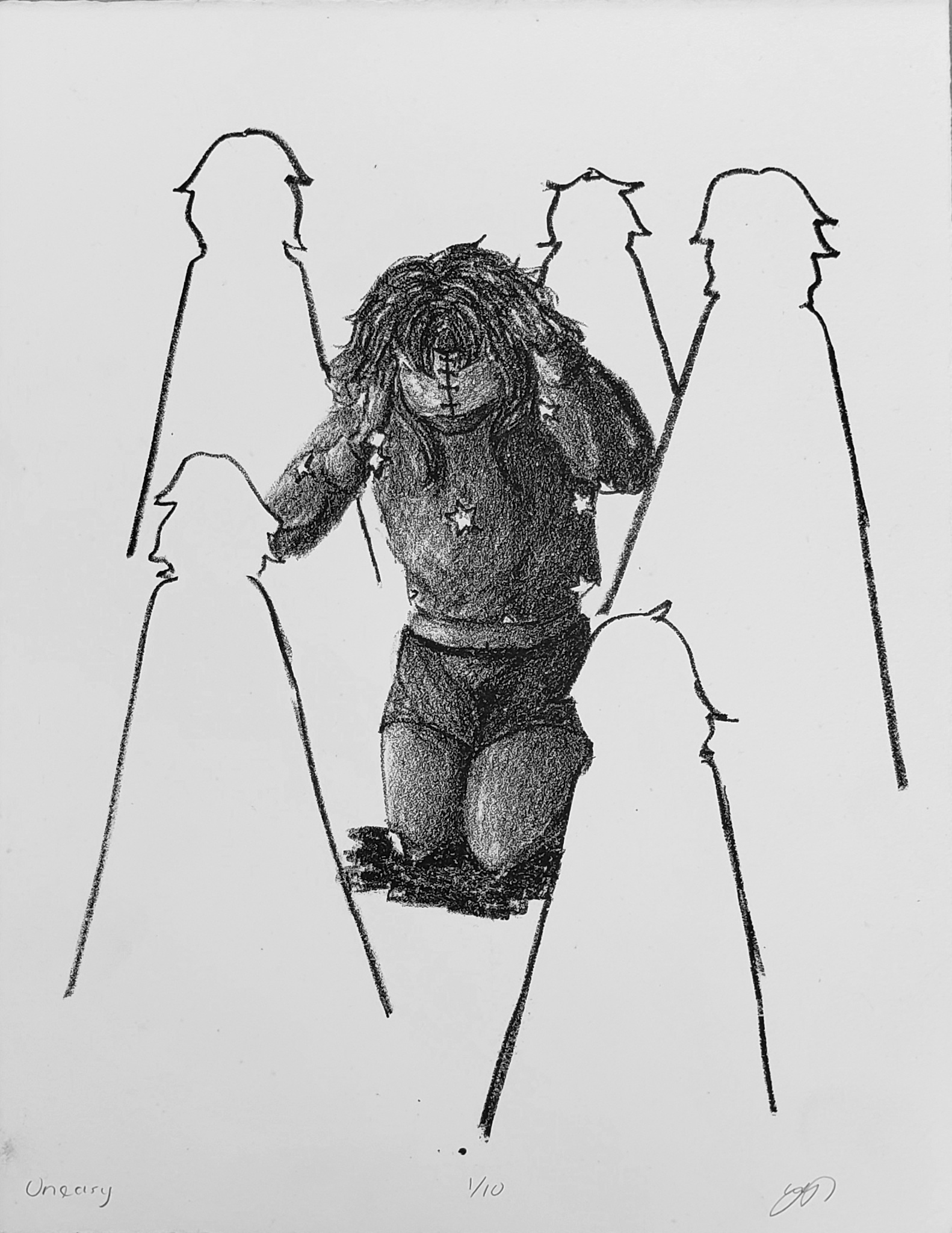 “Uneasy” (2021), Lithography, 13″x10″