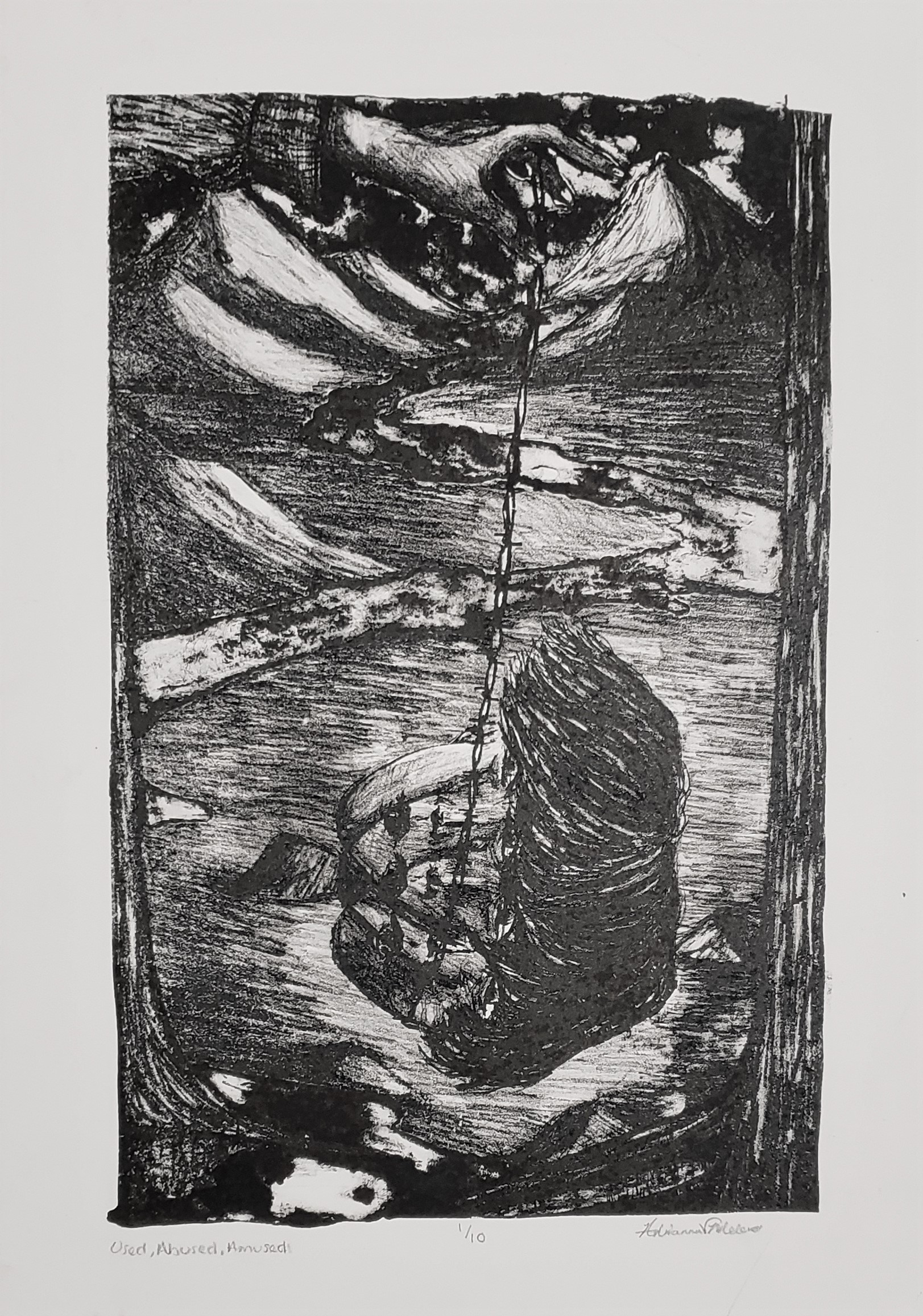 “Used Abused Amused” (2020), Lithography, 26″x18″