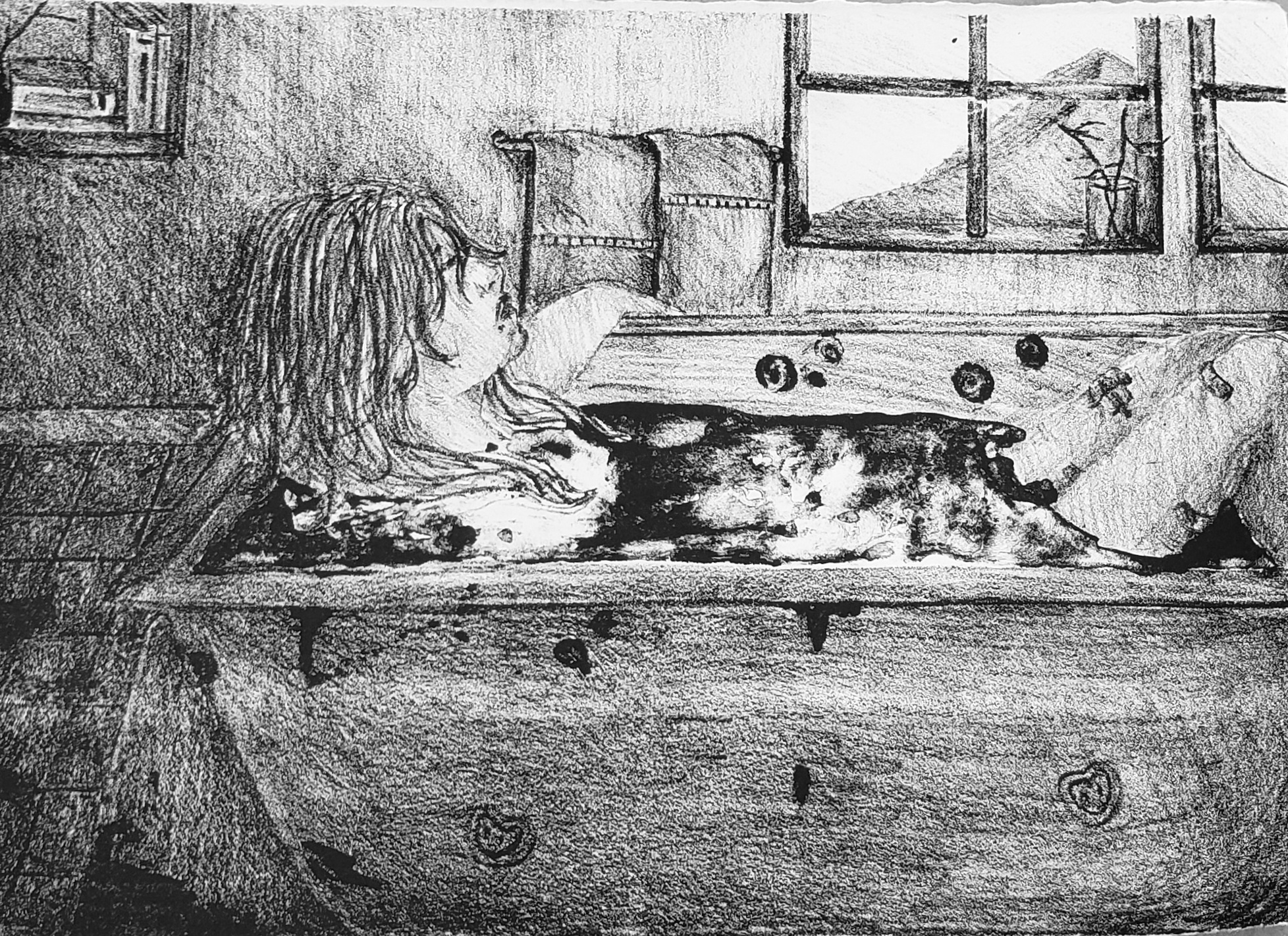 “Sinking in the Calm” (2021), Lithography, 11″x15″