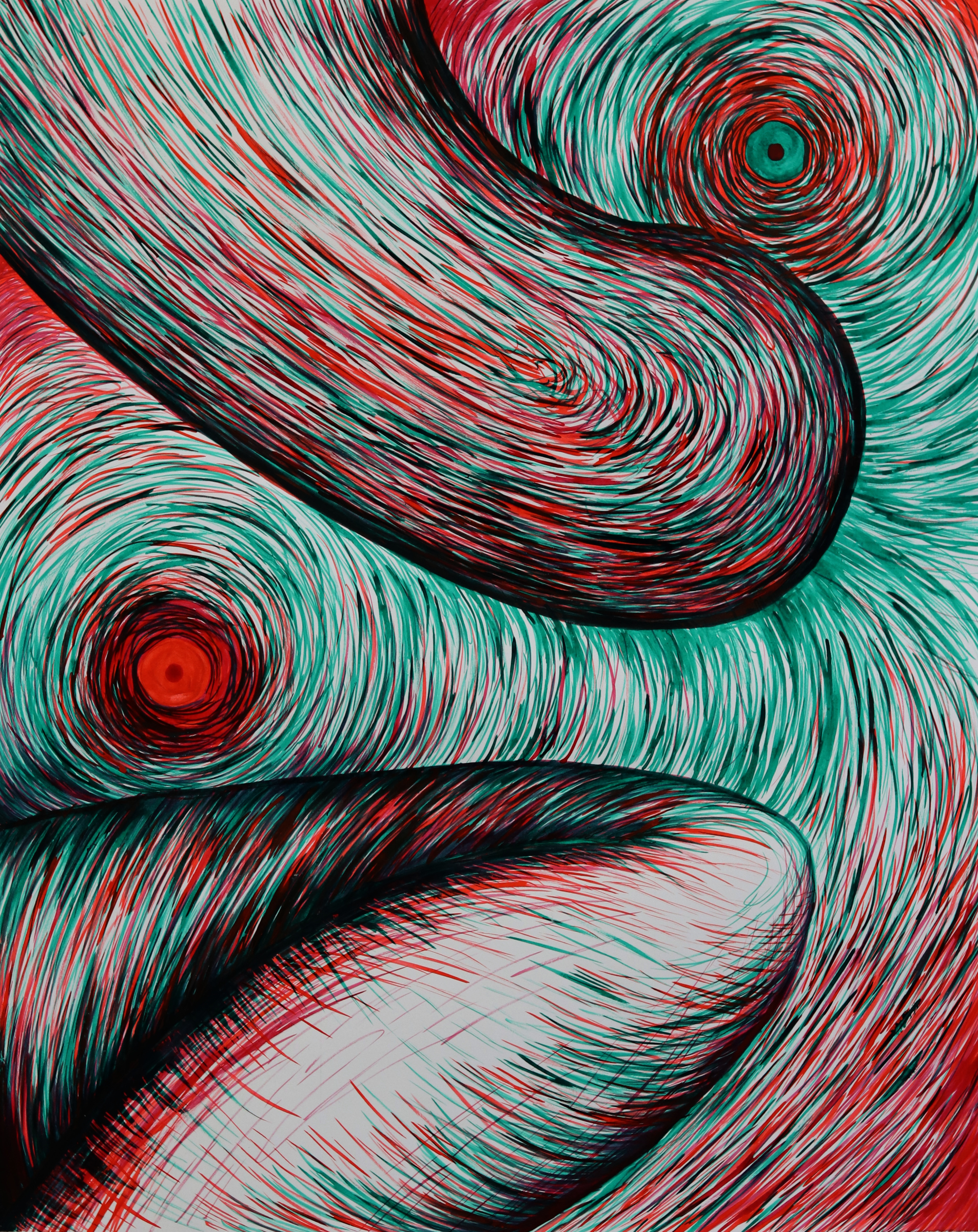 “Perturb” (2020), Ink on Bristol, 16″x20″