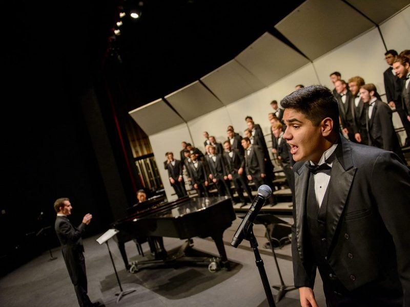 Founded in 1989, Vox Montes or Voice of the Mountains, is a vital part of the NAU choral studies area and reflects the grounded beauty of the San Francisco Peaks in Flagstaff. Undergraduate and graduate students who enjoy the experience of singing in tenor & bass choruses may enroll during the fall and/or spring semesters. The ensemble performs a wide variety of repertoire from different musical styles and periods, from Renaissance music, opera choruses, and global folksongs to du-wop, spirituals, and barbershop. Vox Montes is a spirited community of singers that enjoy sharing their music on the NAU campus, in the Flagstaff community, and across Arizona. In addition to on-campus concerts in the newly-renovated Ardrey Memorial Auditorium, the ensemble has performed at NAU athletic events, the Easter Sunrise Service at the Grand Canyon, and for local outreach and advocacy events.