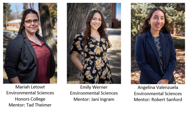 End of the semester is always an amazing time around here, with all the accomplishments of our graduating students on full display. This Spring, Environmental Sciences BS student Yazhmin Dozal is the Distinguished Senior for the College of the Environment, Forestry, and Natural Sciences (CEFNS), Environmental Sciences BS student Joshua Caputo is one of six NAU President’s Prize winners, and Environmental Sciences BS students Mariah Letowt, Angelina Valenzuela, and Emily Werner are Gold Axe winners. We’re so lucky to have you all as School of Earth and Sustainability alumni!